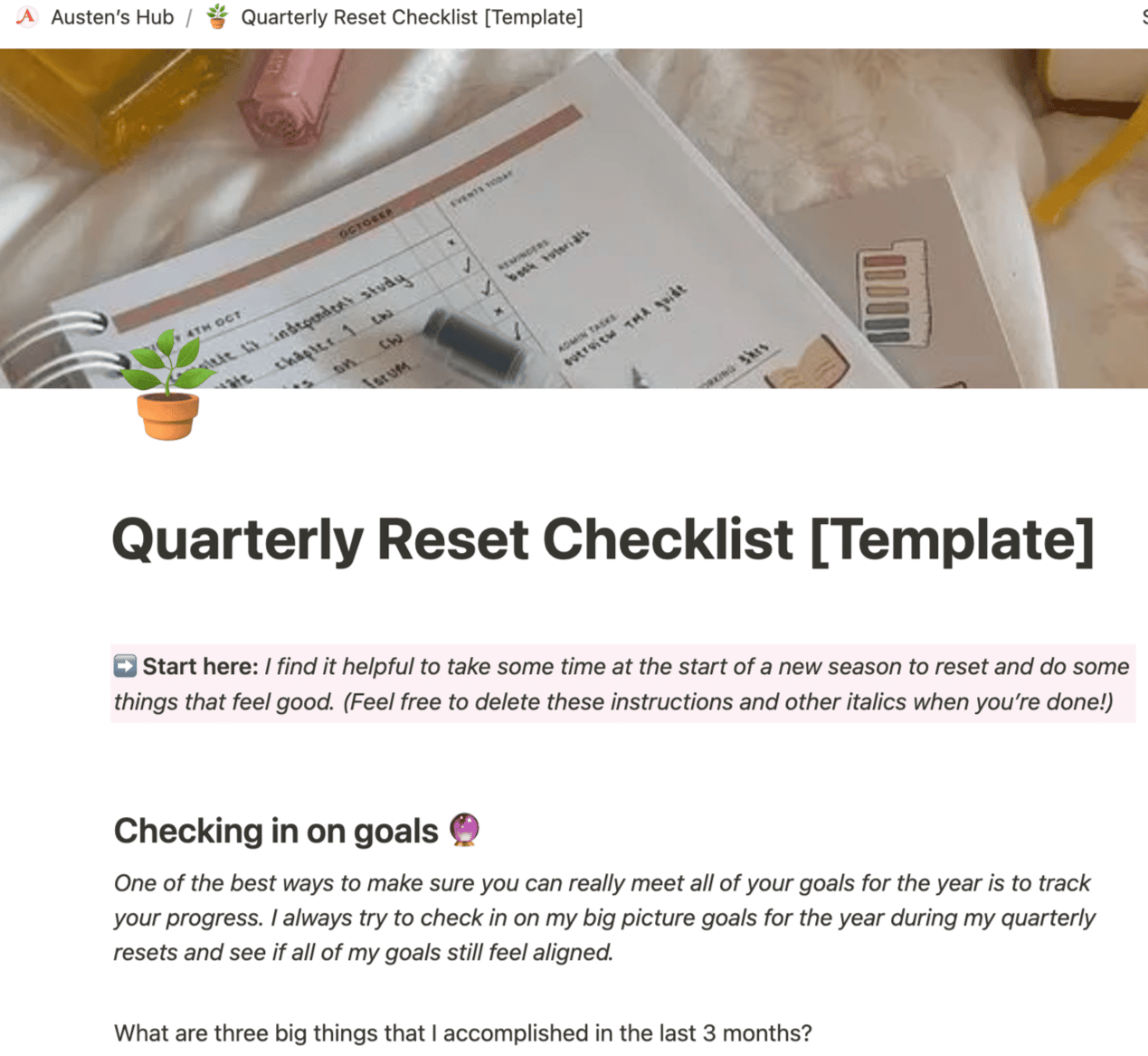 Are you ready to tackle a quarterly reset? This handy checklist will help you through the 3 phases. Works with free and paid Notion accounts!